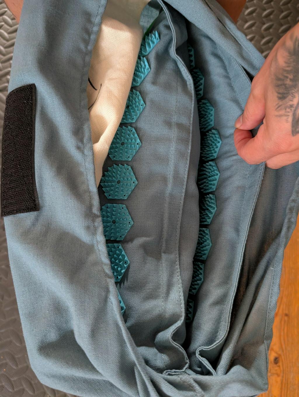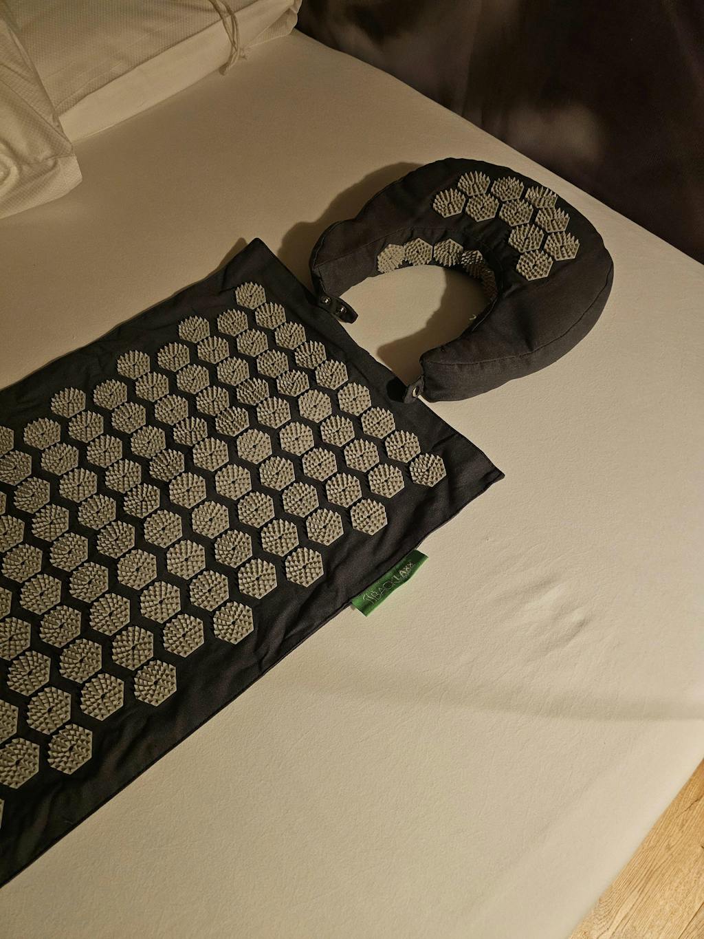 6.960 ergonomisch angeordnete Spitzen stimulieren sanft Deinen Körper und fördern Dein Wohlbefinden. Die Spitzen bestehen aus robustem, medizinischem HIPS-Kunststoff und sind durch ein spezielles Wärmepress-Verfahren ohne Klebstoff auf dem Bezug angebracht. Der Bezug besteht aus atmungsaktivem Halbleinen (45 % Leinen / 55 % Baumwolle). Die Akupressurmatte lässt sich ganz unkompliziert zusammenrollen und verschnüren – ideal für unterwegs!